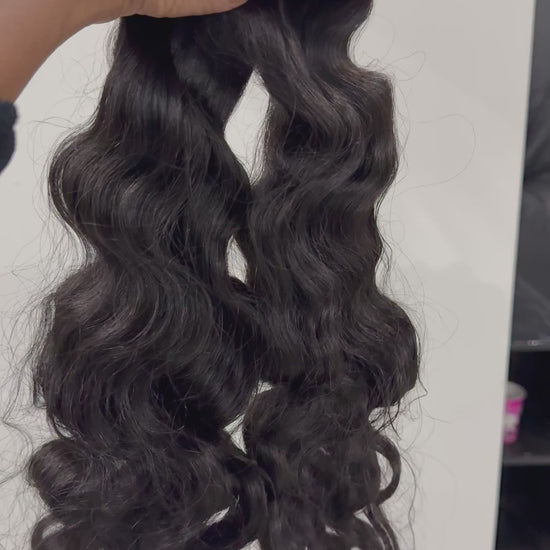 Empress wavy bundles give stunning results with low maintenance. This texture blends perfectly with natural hair giving a matte lustrous finish.